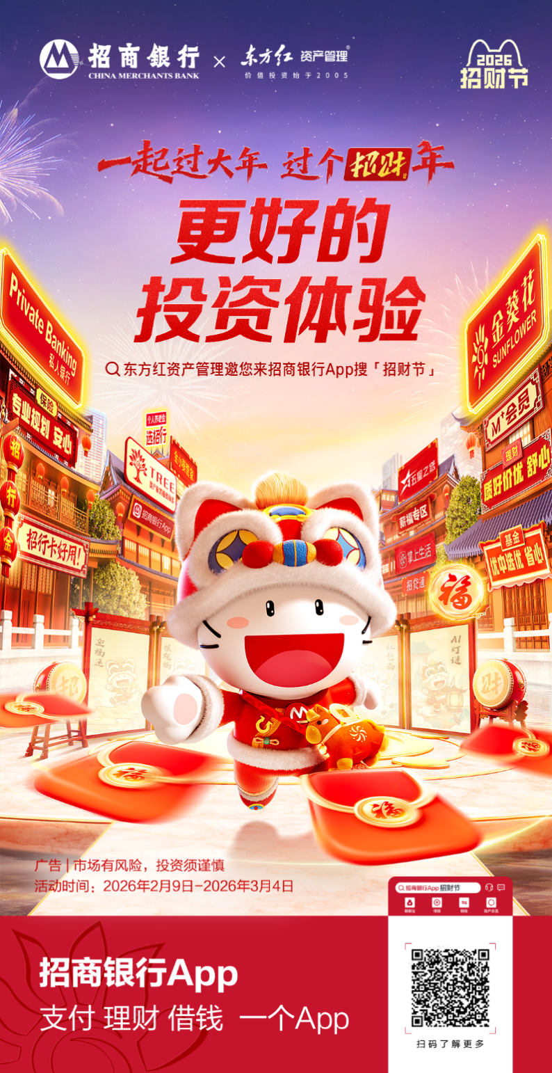 新春将至,年味渐浓。招商银行联袂东方红资产科罚重磅开启2026「招财节」活动,以「一皆过大年,过个招财年」为主题,为遍及投资者打造“更好的投资体验”,陪您暖和迎新春,钞票共进阶。
